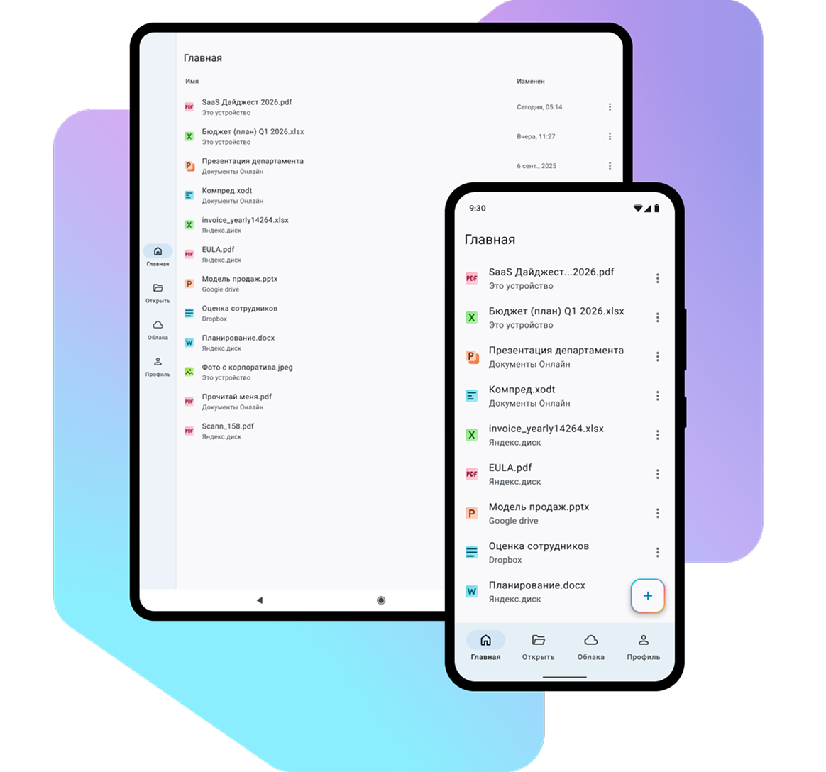 Оставайтесь продуктивными вне офиса или вдали от компьютера c универсальным и безопасным решением для работы с документами на мобильных устройствах и планшетах