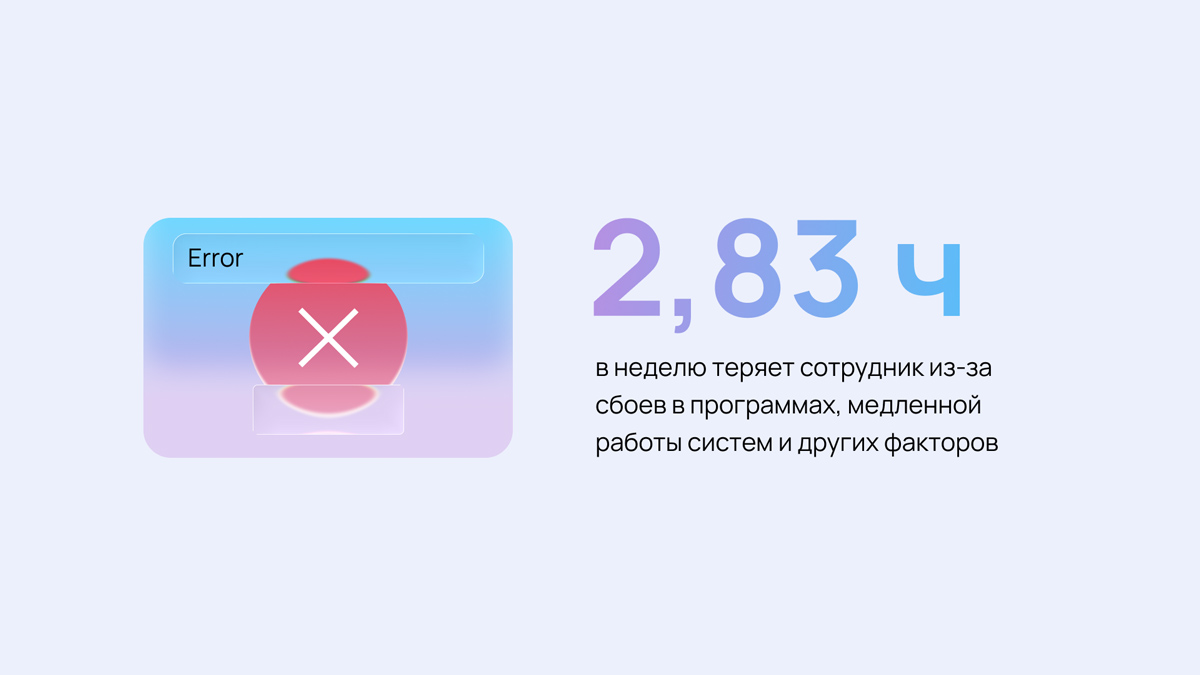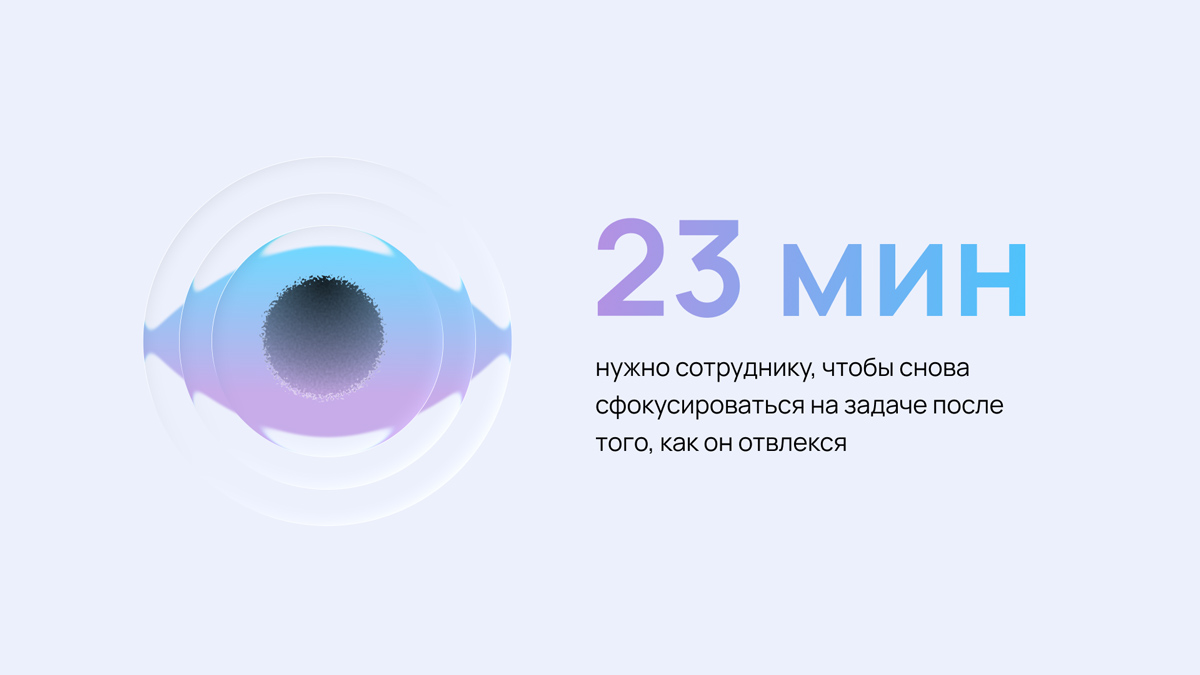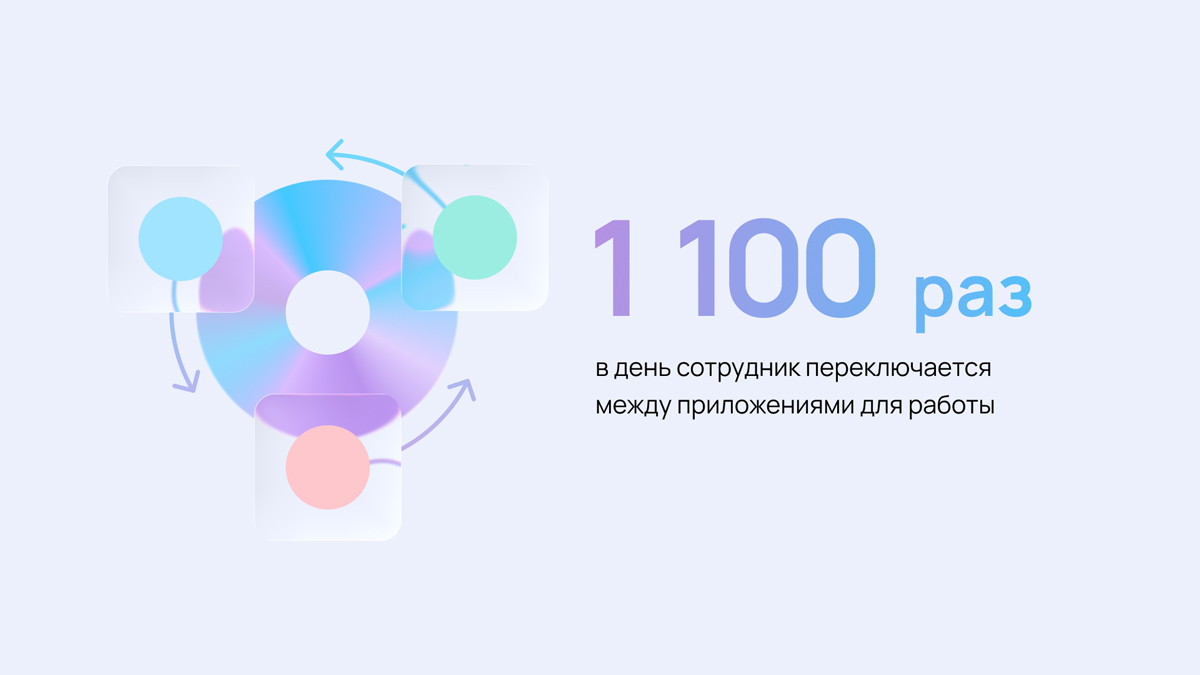 В течение дня сотрудники постоянно переходят из приложения в приложение: из мессенджера в почту, из текстового редактора в календарь. Такие действия кажутся мелочью, но это не так. Переключения утомляют и съедают рабочее время: один переход между сервисами занимает до 10 секунд, потому что пользователю нужно сориентироваться в новом интерфейсе.