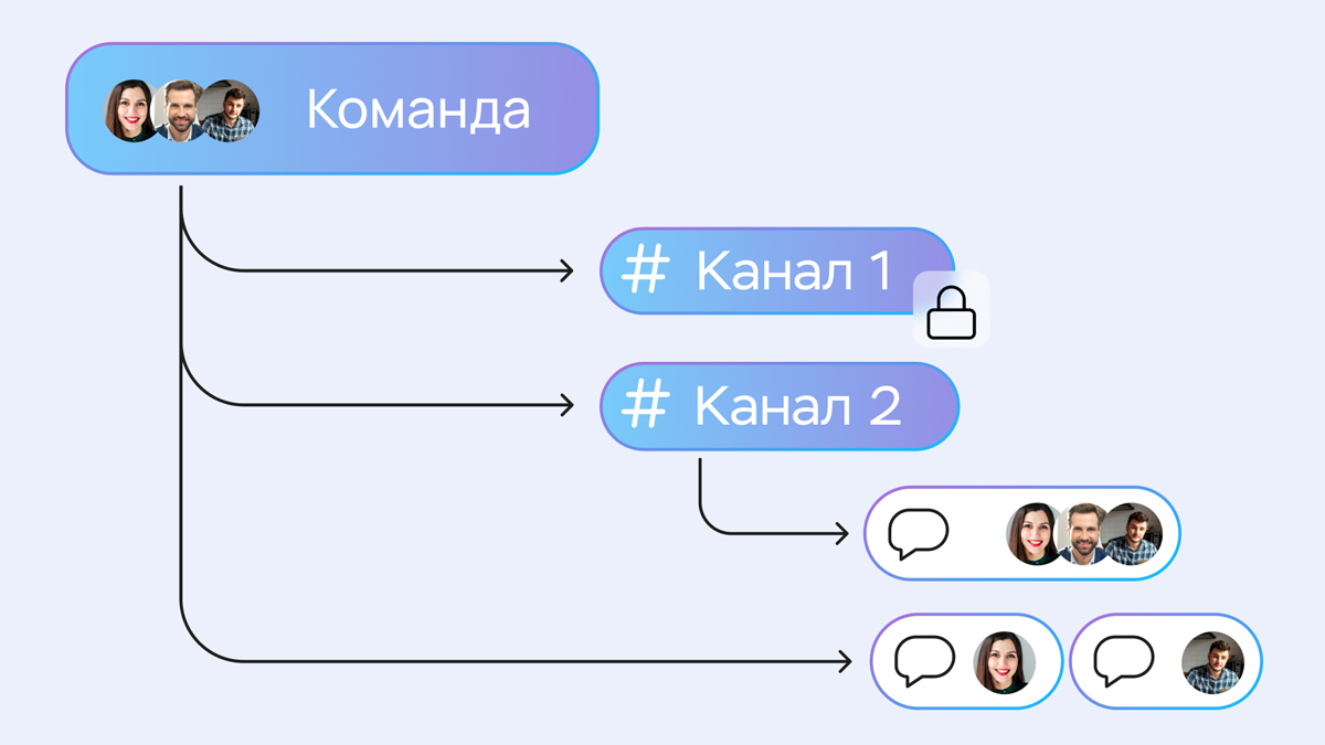 Когда сотрудники переписываются то в одном, то в другом приложении, коммуникация становится хаотичной. Письма в почте, сообщения в мессенджерах, чаты в сервисе ВКС — потоки информации накладываются друг на друга и создают путаницу. Сотрудникам приходится скроллить сразу несколько переписок, чтобы отследить историю сообщений или найти отправленные документы. К тому же, они рискуют упустить важные детали и даже не узнать об этом: коллеги могут принять решение в личной переписке и оставить часть команды в неведении.