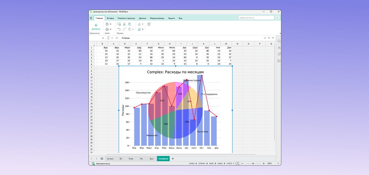 Теперь в редакторе «МояТаблица» есть встроенный интерпретатор VBA-макрокоманд. Благодаря ему удобно продолжать работу в накопленных за годы табличных документах, которые создавали и редактировали в Microsoft Excel: макрокоманды будут работать без переписывания кода. Мы первыми в России встроили эту функцию в настольный редактор.