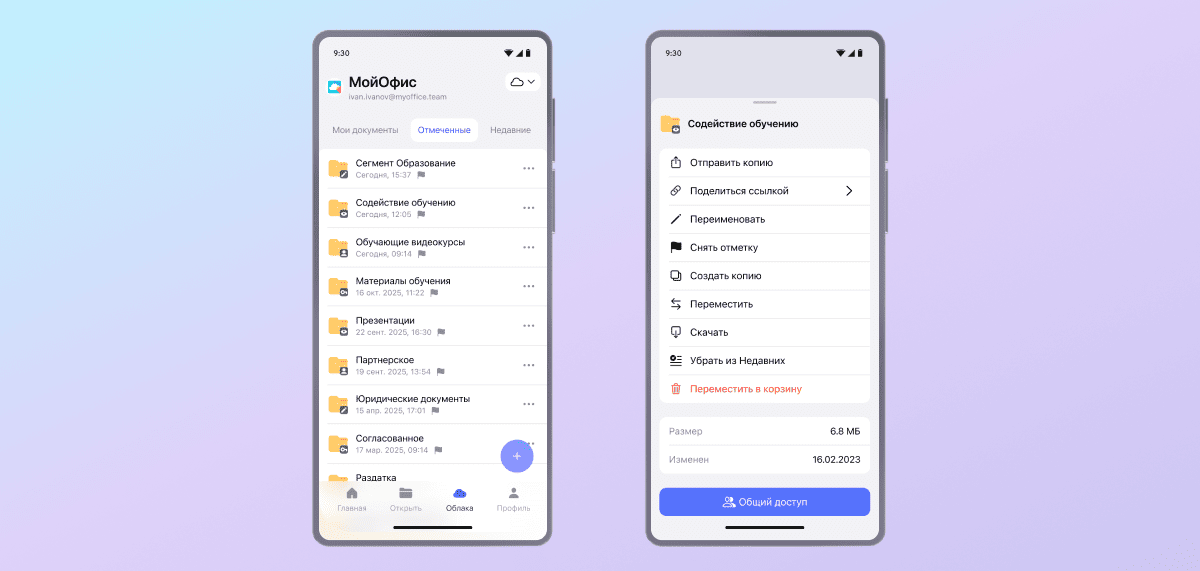 Как и в «МойОфис Документы Онлайн», в «МойОфис Документы Мобильные» есть управление правами доступа. Вы решаете сами, кто из коллег может просматривать, комментировать и редактировать файлы. Это защищает данные от незапланированных изменений.