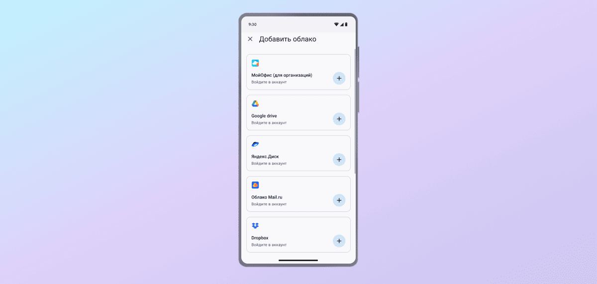 Чтобы доступ к облачным документам был как можно проще, мы адаптировали «МойОфис Документы Мобильные» для разных платформ и предусмотрели возможность добавлять разные облака. Приложение совместимо с устройствами на Android, iOS, iPadOS и отечественных ОС на базе AOSP. В нем можно работать с файлами не только из «МойОфис Документы Онлайн», но и из Яндекс.Диск, Облако Mail, Google Drive, Dropbox.