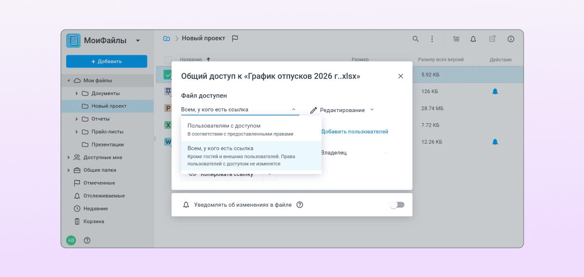 Предоставление доступа по ссылке