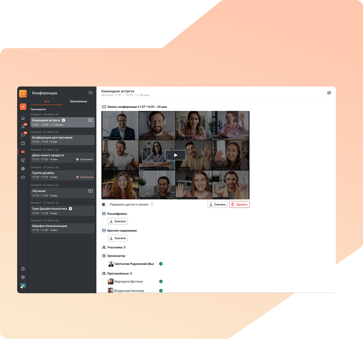 Общайтесь, созванивайтесь и обменивайтесь документами с внешними клиентами, партнёрами и подрядчиками, не выходя из Squadus. Важно: История переписки сохранится у вас