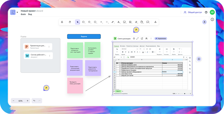 Новый уровень командной работы: используйте привычные инструменты онлайн-доски и редактируйте документы в одном приложении