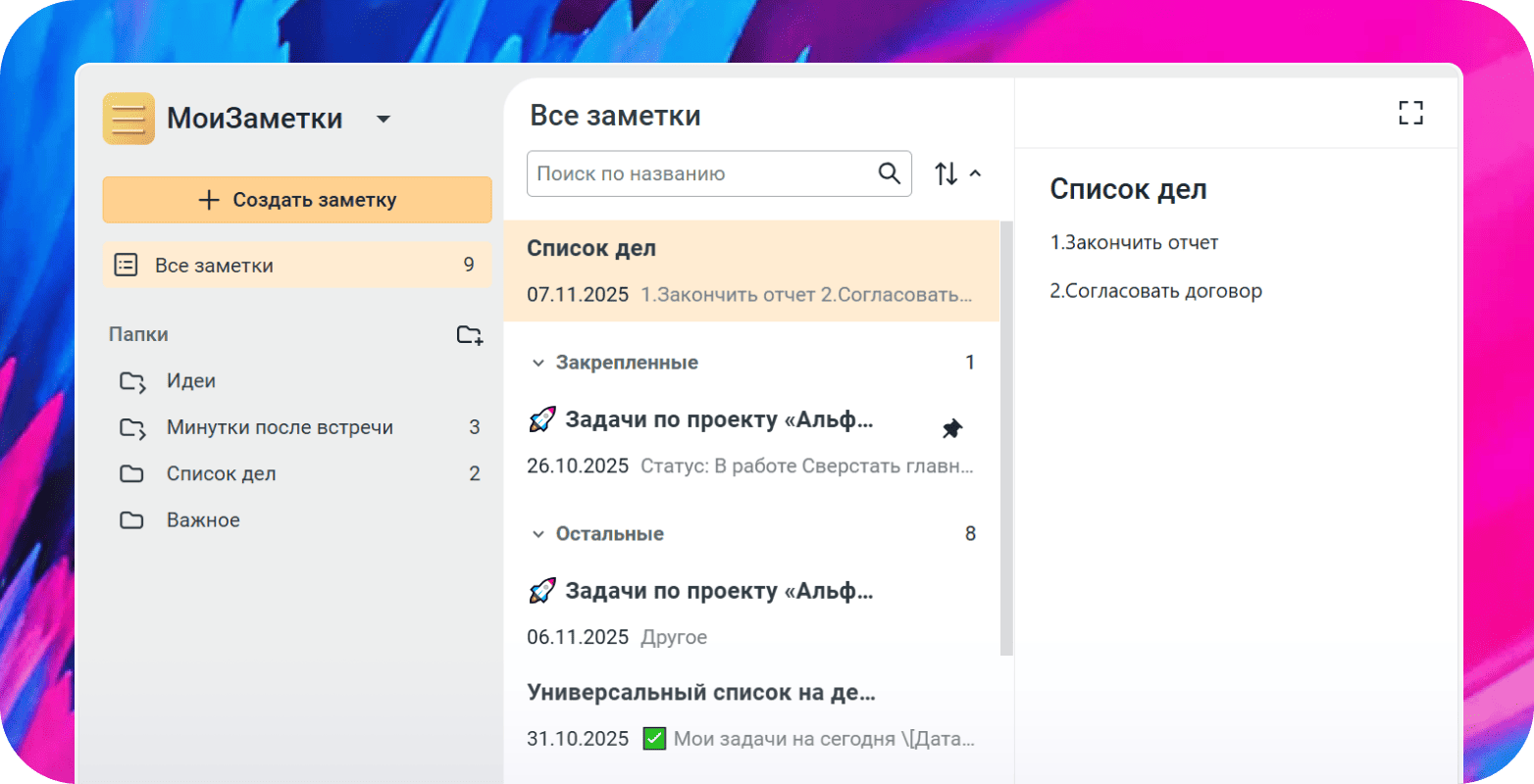Записывайте планы на день, сохраняйте идеи, фиксируйте договоренности в отдельном приложении